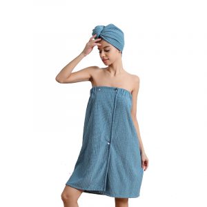 Cross border Microfiber bathrobe, bath cap combination, women’s water absorption, quick dry hair wiping, dry hair towel, hemmed dry hair cap, bath skirt