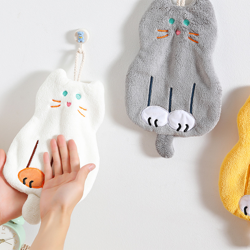 Kitchen, bathroom, children’s cartoon hand towels, absorbent towels, cat coral velvet square towels, children’s disposable hand towels
