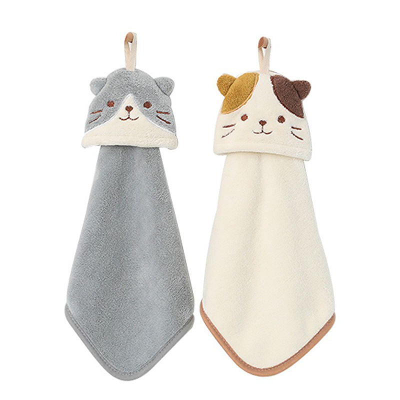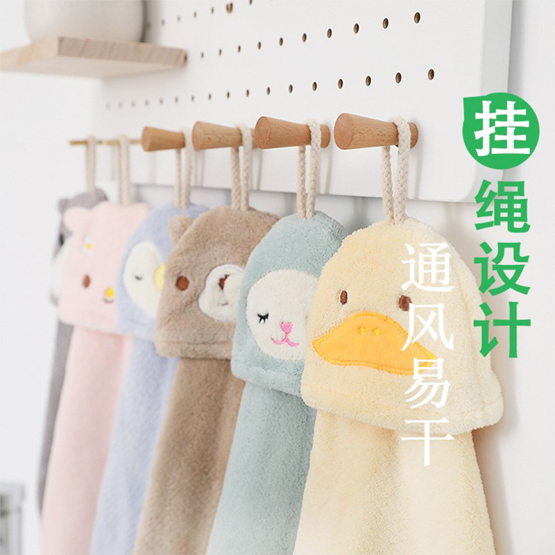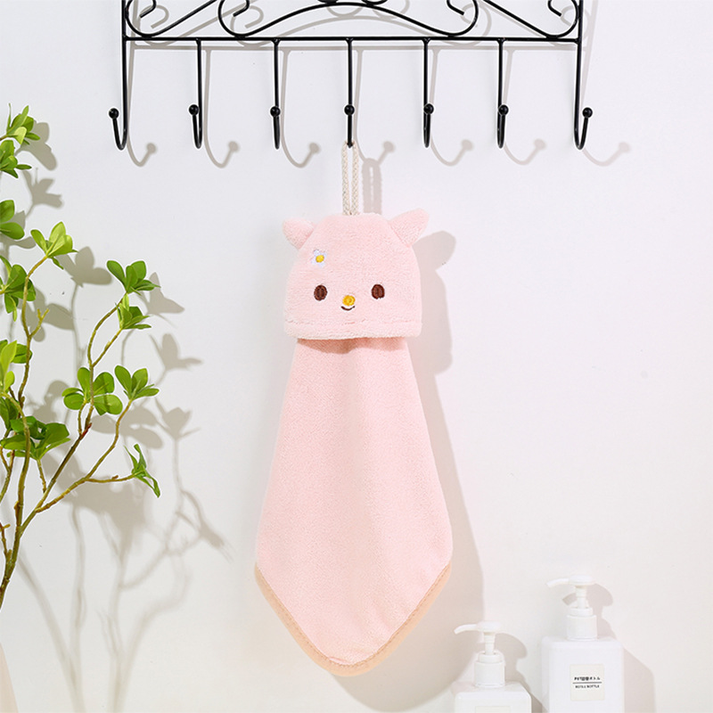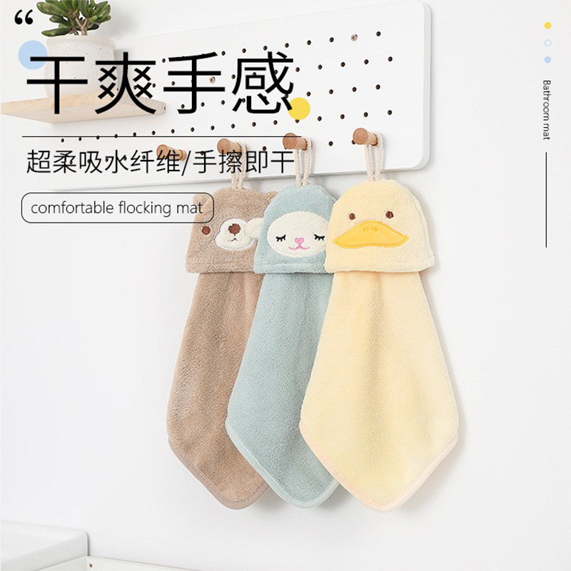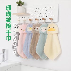Wholesale coral fleece cartoon cute hand towel hangable kitchen bathroom absorbent rag kids hand towel